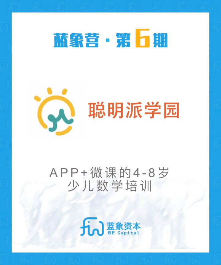 藍(lán)象資本是專注教育領(lǐng)域的早期基金,項(xiàng)目按照1000萬(wàn)元估值投資30或80萬(wàn)元。每年2期“藍(lán)象營(yíng)”加速計(jì)劃,每期持續(xù)6個(gè)月。